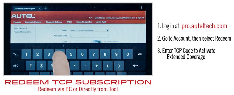 Comment payer et obtenir le service de mise à jour :Maintenant, Autel fournit le service de mise à jour pour MS908P en utilisant les cartes Total Care Program (TCP), Une fois que vous aurez terminé le paiement, nous vous partagerons le code TCP (Compte et mot de passe pour la mise à jour en ligne).